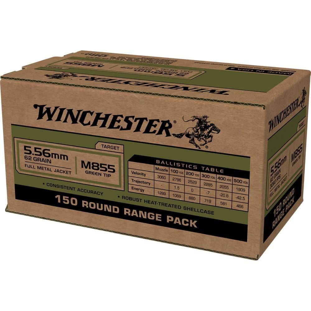Winchester USA Lake City M855 Green Tip Rifle Ammunition 5.56mm 62 gr. FMJ 1255 fps 150/ct